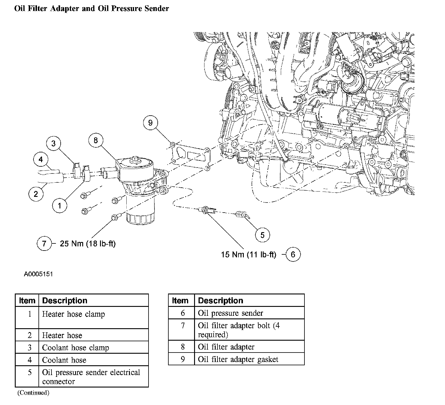 Oil Filter Adapter and Oil Pressure Sender: