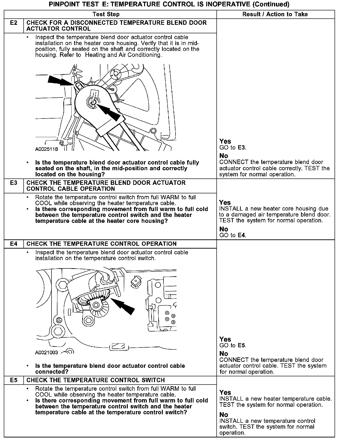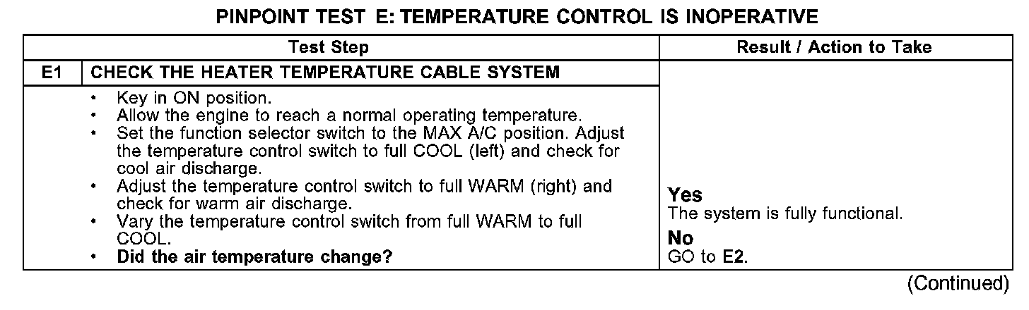 PINPOINT TEST E: TEMPERATURE CONTROL IS INOPERATIVE