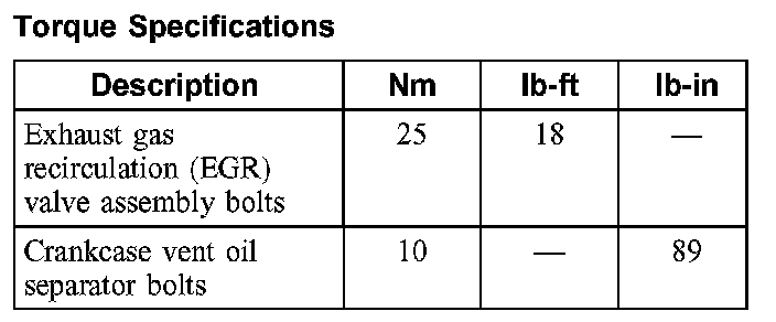 Torque Specifications: