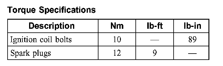 Torque Specifications: