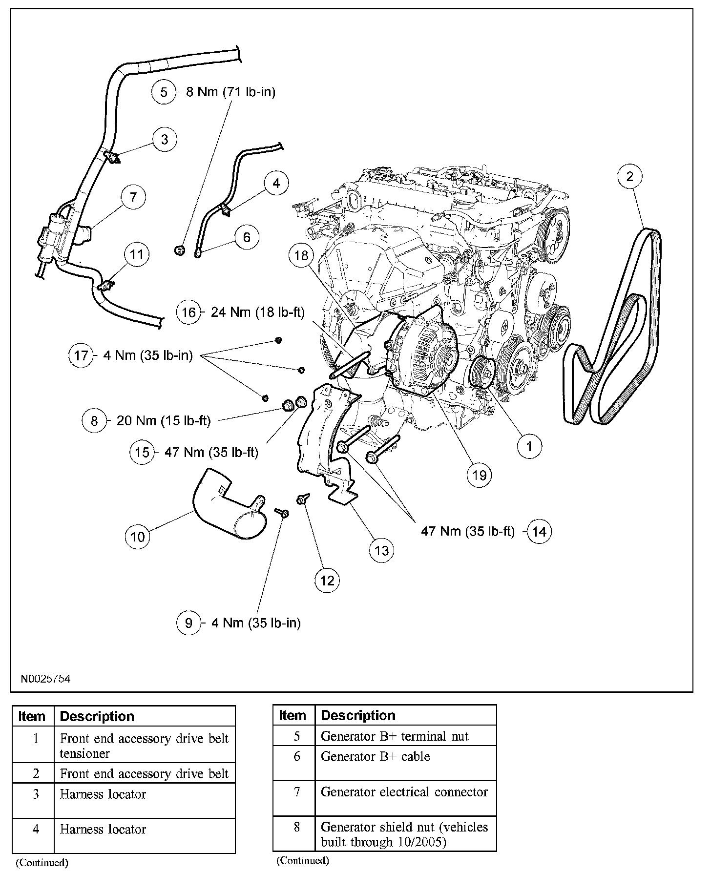 6. Position the generator B+ protective cover aside and remove the generator B+ terminal nut.