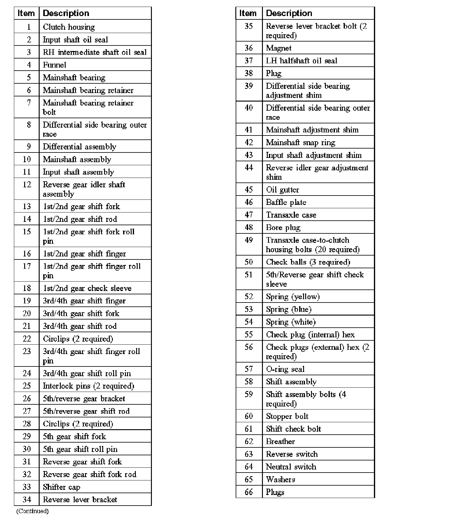 CAUTION: Visually inspect all parts for any damage, deformation or abnormal wear. Replace any unsuitable parts with new parts only or damage to the transaxle may occur.