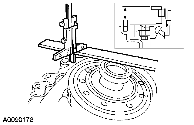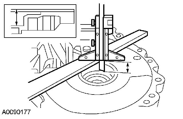 50. Using a depth micrometer and a straight edge, measure and record the depth from the mating surface of the clutch housing to the input shaft bearing outer race outer surface. Record this measurement as L2.