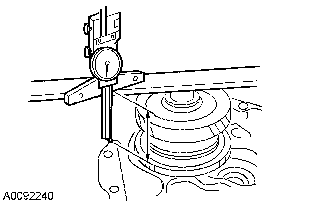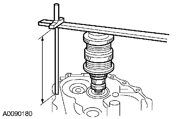 43. Using the special tool, measure and record the depth of the transaxle case to the mainshaft bearing surface when the circlip is expanded and mainshaft is raised to contact the transaxle case.