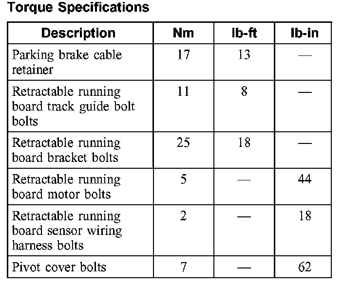 Auxiliary Step / Running Board: Specifications