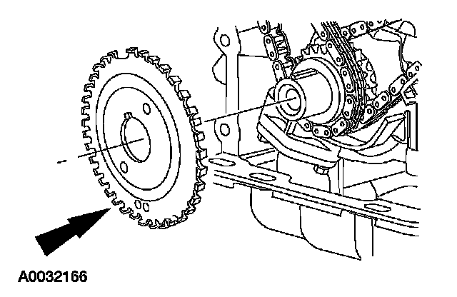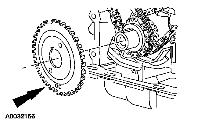 15. CAUTION: Damage to the camshaft phaser sprocket assembly will occur if mishandled or used as a lifting or leveraging device.