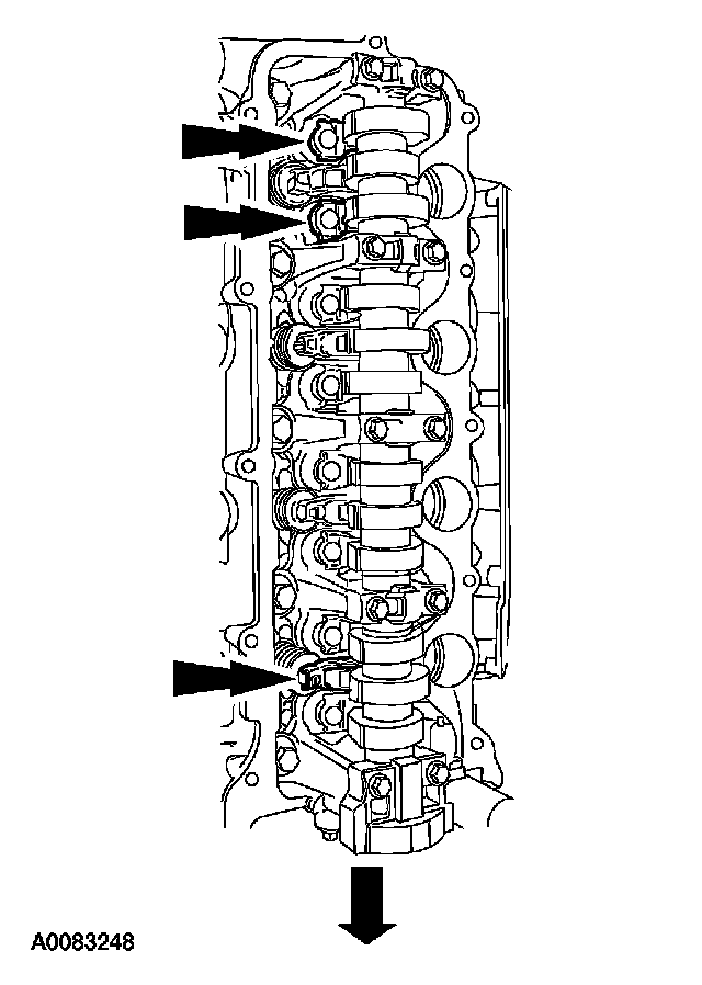 ^ Position the remaining camshaft bearing caps.