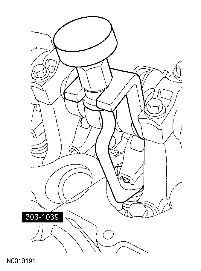 Remove the 2 bolts and the LH cylinder head camshaft bearing cap.