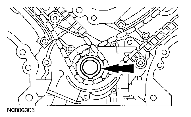 ^ Remove the LH timing chain and crankshaft sprocket.