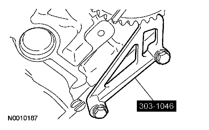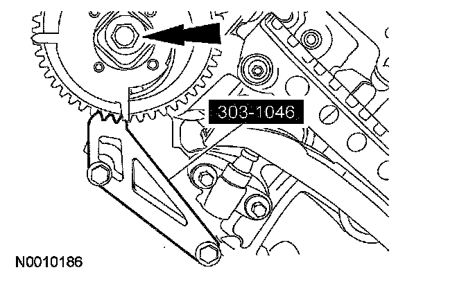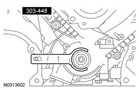 14. CAUTION: Damage to the camshaft phaser sprocket assembly will occur if mishandled or used as a lifting or leveraging device.