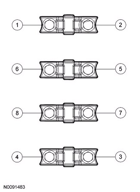Remove the remaining 8 bolts in the sequence shown and remove the LH cylinder head camshaft bearing caps.
