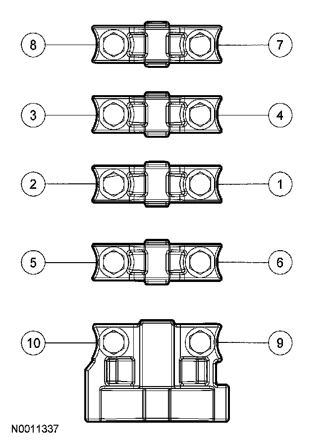 ^ Tighten to 10 Nm (89 inch lbs.). in the sequence shown.