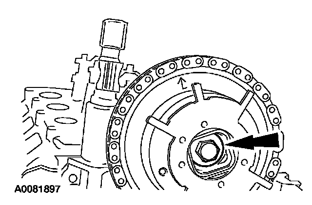 ^ Remove the RH timing chain from the camshaft sprocket.