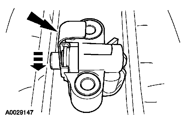 7. Install a retaining clip on the tensioner to hold the plunger in during installation.