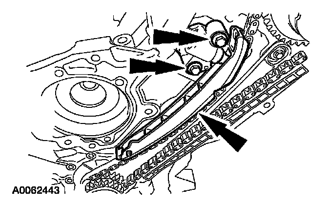 Remove the bolts, the LH timing chain tensioner and tensioner arm.