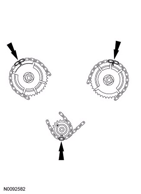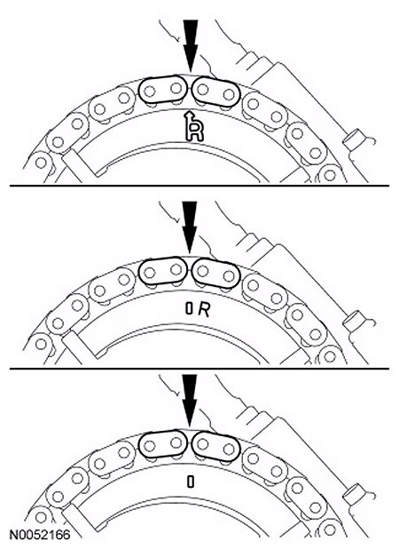 Position the RH timing chain on the camshaft phaser and sprocket wil the timing mark positioned between the 2 copper (marked) chain links.