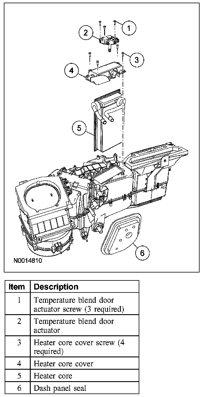 NOTE: If a heater core leak is suspected, the heater core must be leak tested before it is removed from the vehicle.