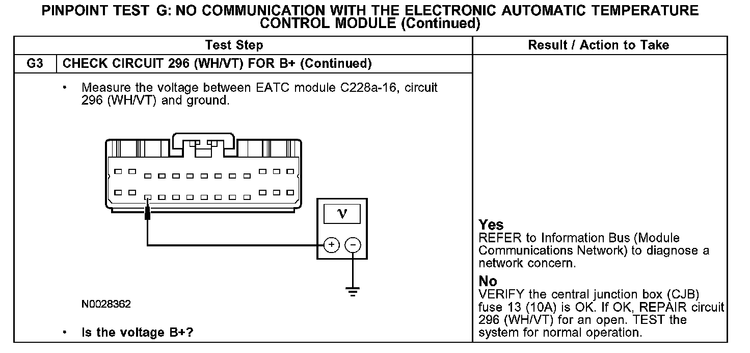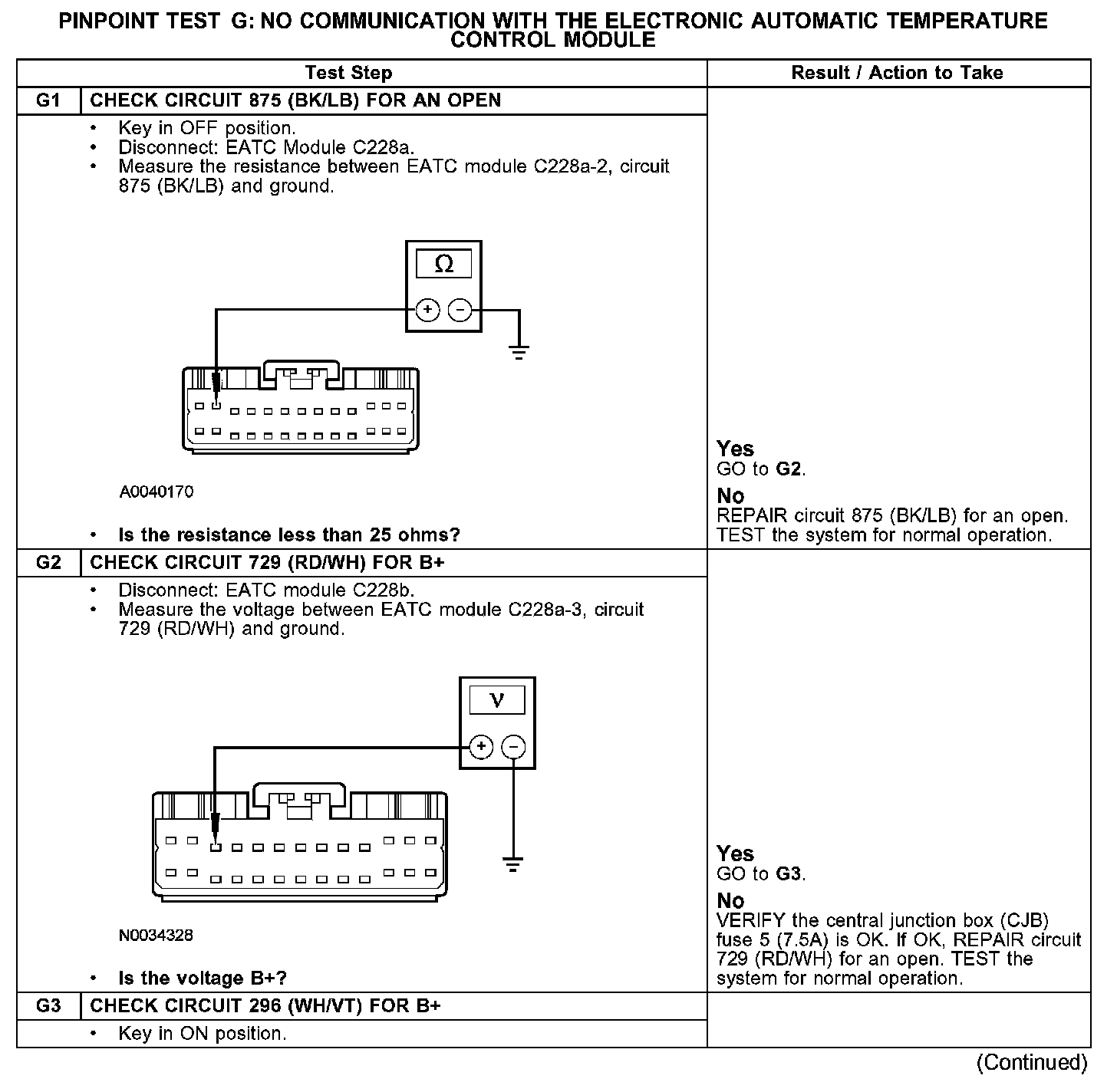 PINPOINT TEST G: NO COMMUNICATION WITH THE ELECTRONIC AUTOMATIC TEMPERATURE CONTROL MODULEG1-G3: