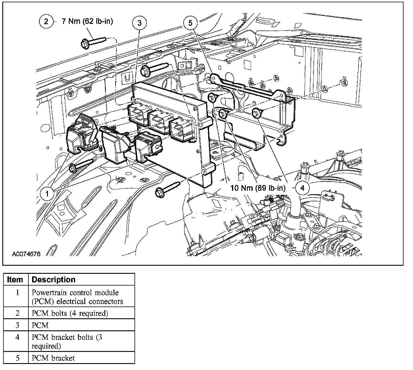 5. If servicing the PCM bracket, remove the 3 bolts and the PCM bracket.