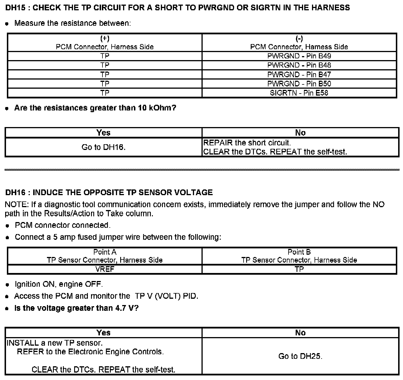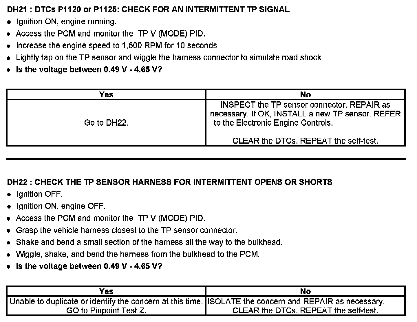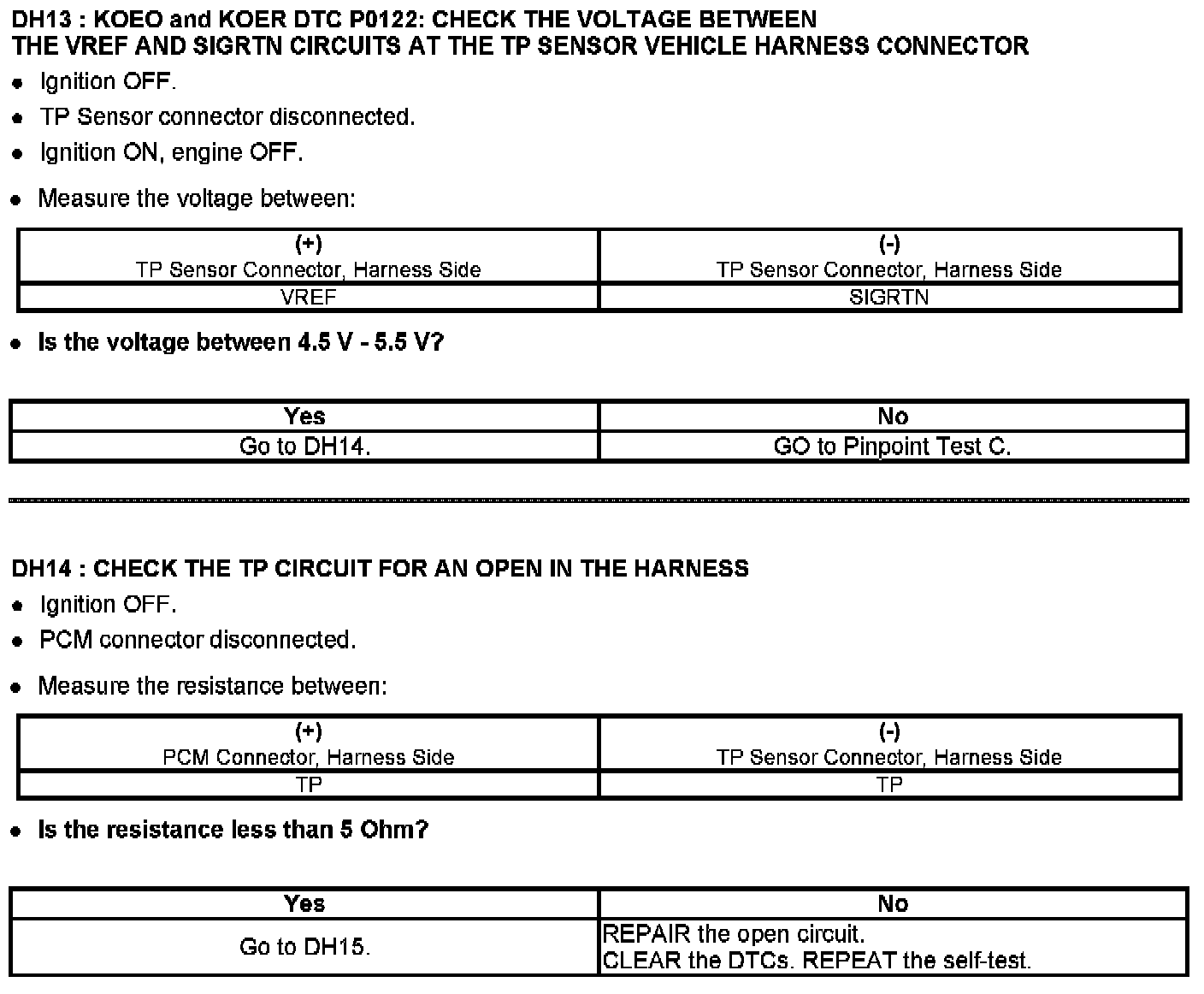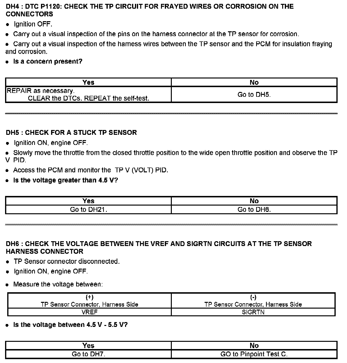 Tests DH: Throttle Position (TP) Sensor