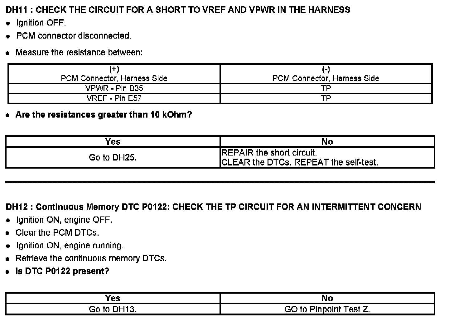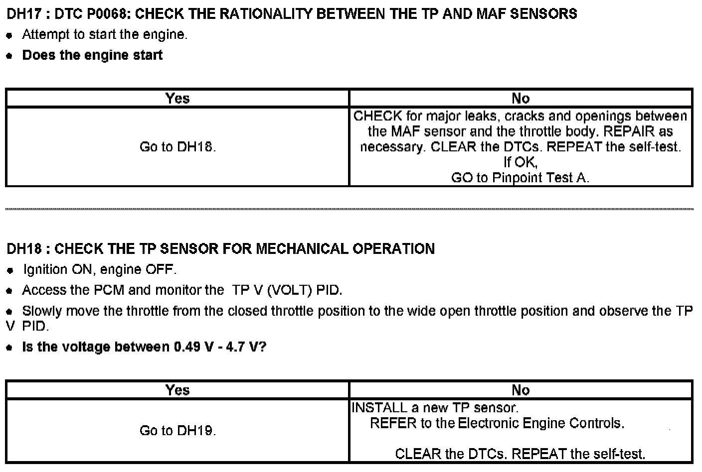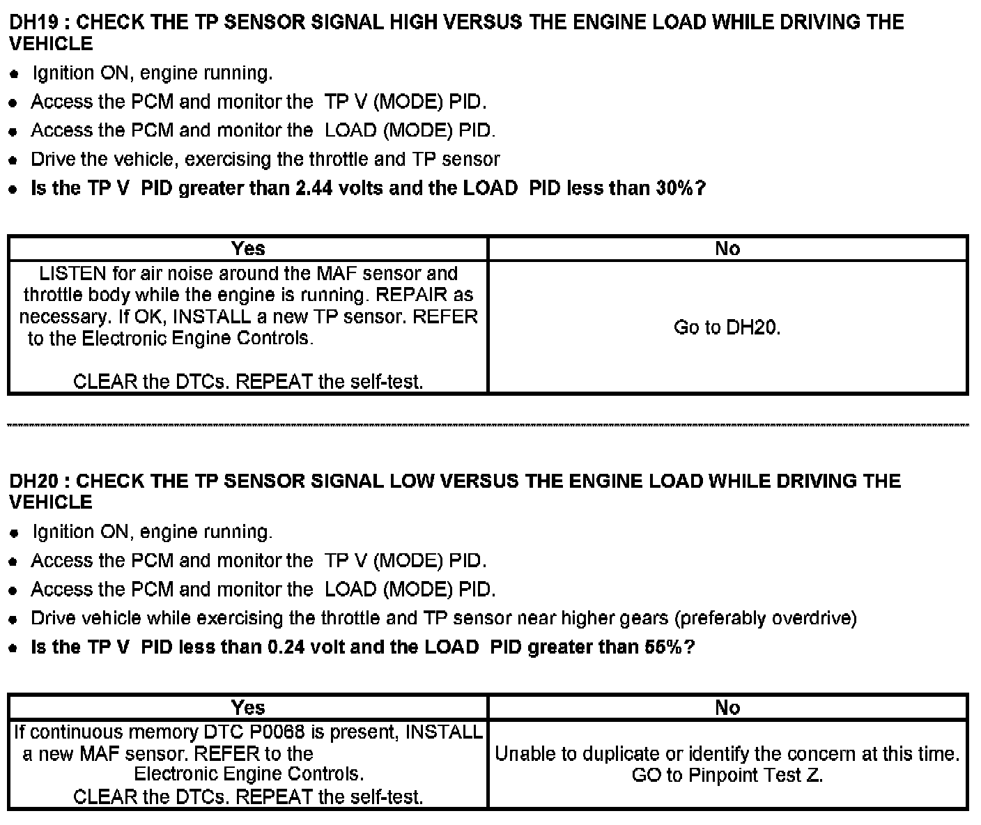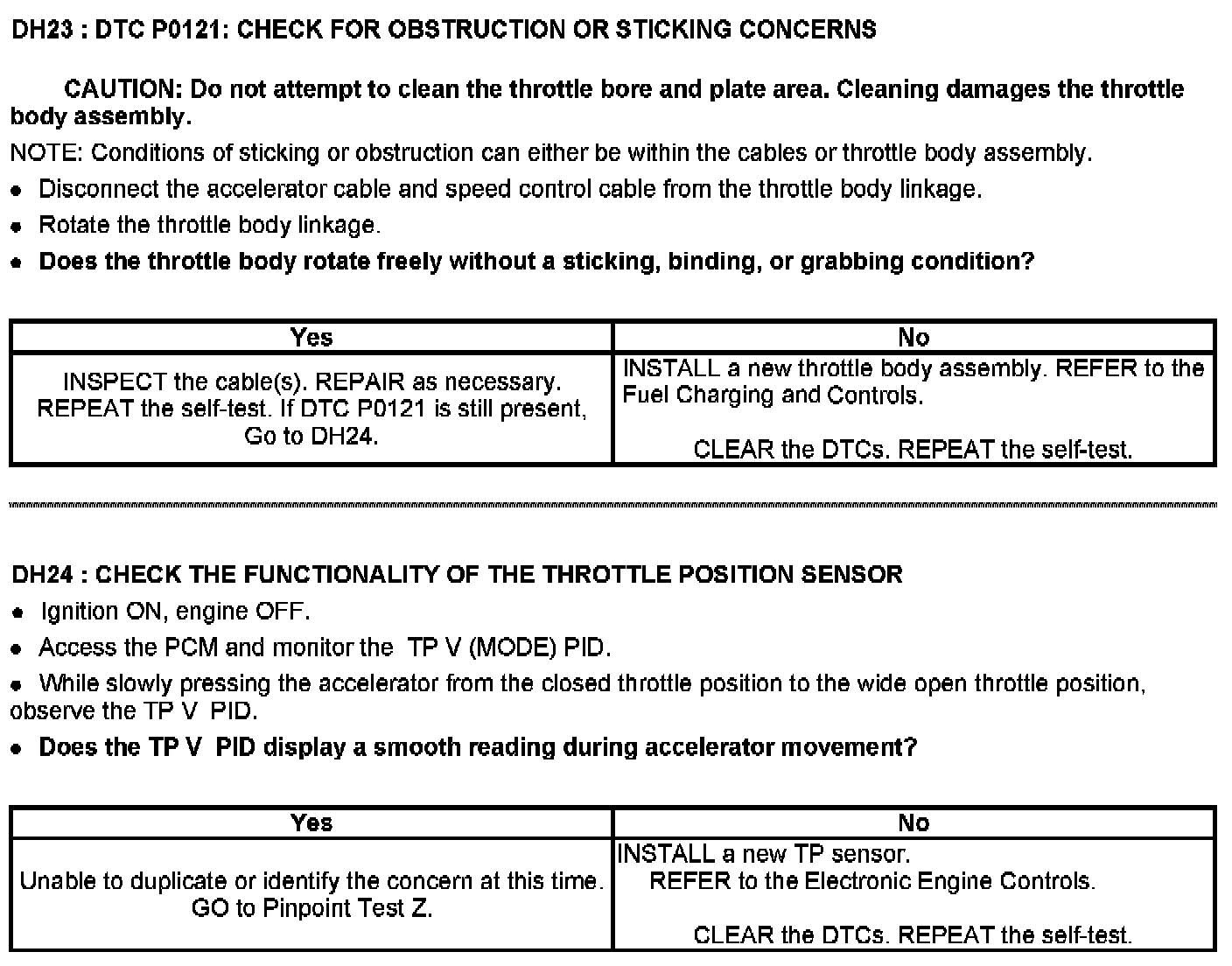 Tests DH: Throttle Position (TP) Sensor