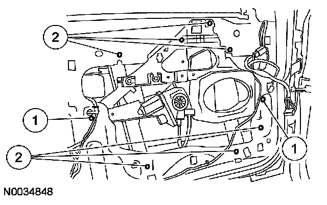 2 Remove the front window regulator bolts and front top run channel bolt.