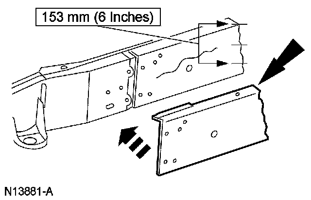 7. In the event that a repair is required on more than one frame surface (for example, a flange crack that extends into the web), 2 pieces of flat stock should be welded together where they join. The web reinforcement should be a minimum of 76.2 mm (3.0 in) high and have a 63.5 mm (2.54 in) radius at each of the 2 corners.