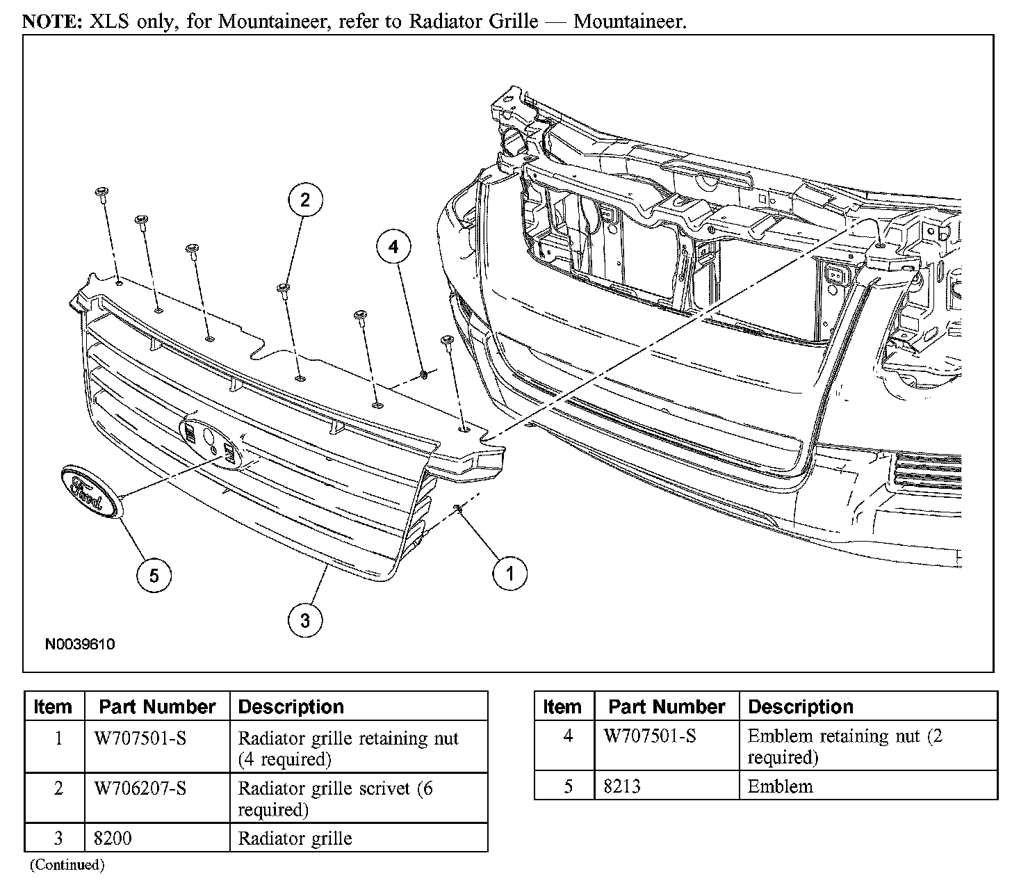 RADIATOR GRILLE - ExplorerXLT Shown, All Other Trim Levels Similar: