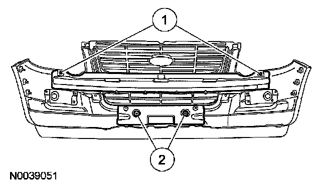 2. Using the headlamp openings for access, remove the 4 grille retaining nuts.