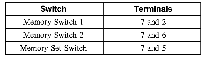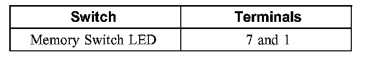 To check the memory set switch LED, connect the positive meter lead to terminal 7 and the negative lead to terminal 1. The meter should indicate greater than 0.3 volts. Reversing the leads, the meter should read OL.