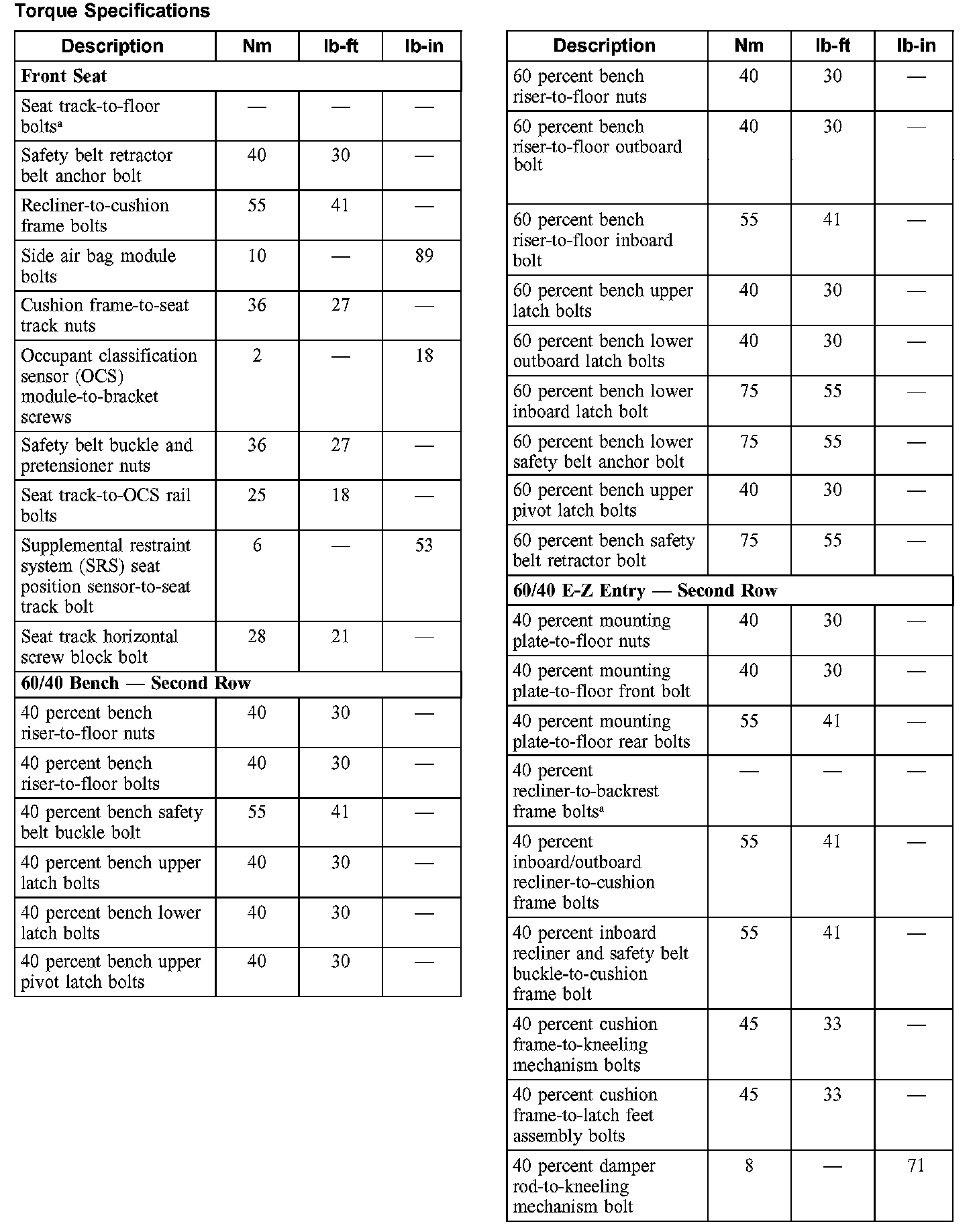 Torque Specifications (Part 1):