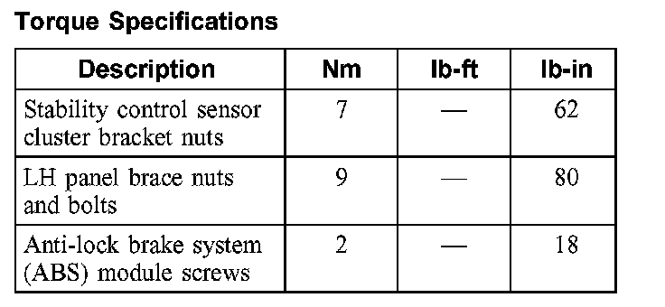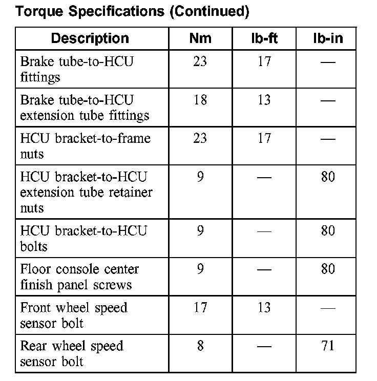 Torque Specifications:
