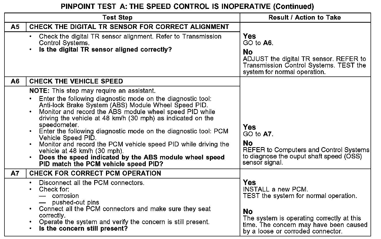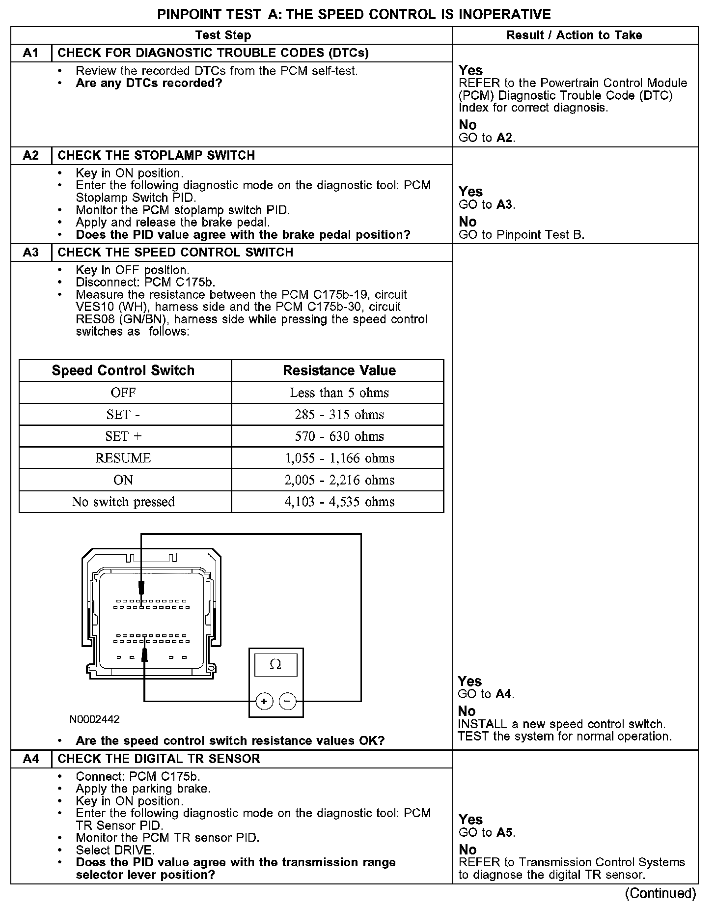 PINPOINT TEST A: THE SPEED CONTROL IS INOPERATIVE