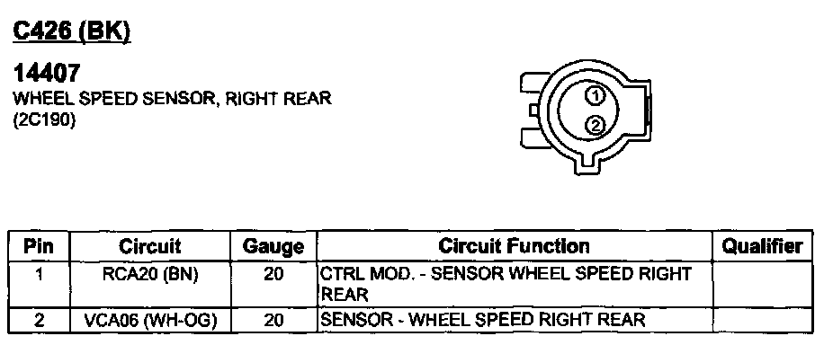 Wheel Speed Sensor, Right Rear