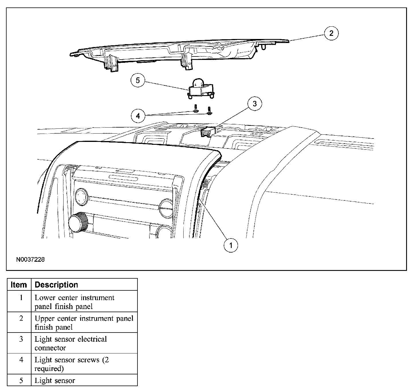 2. Remove the upper center instrument panel finish panel.