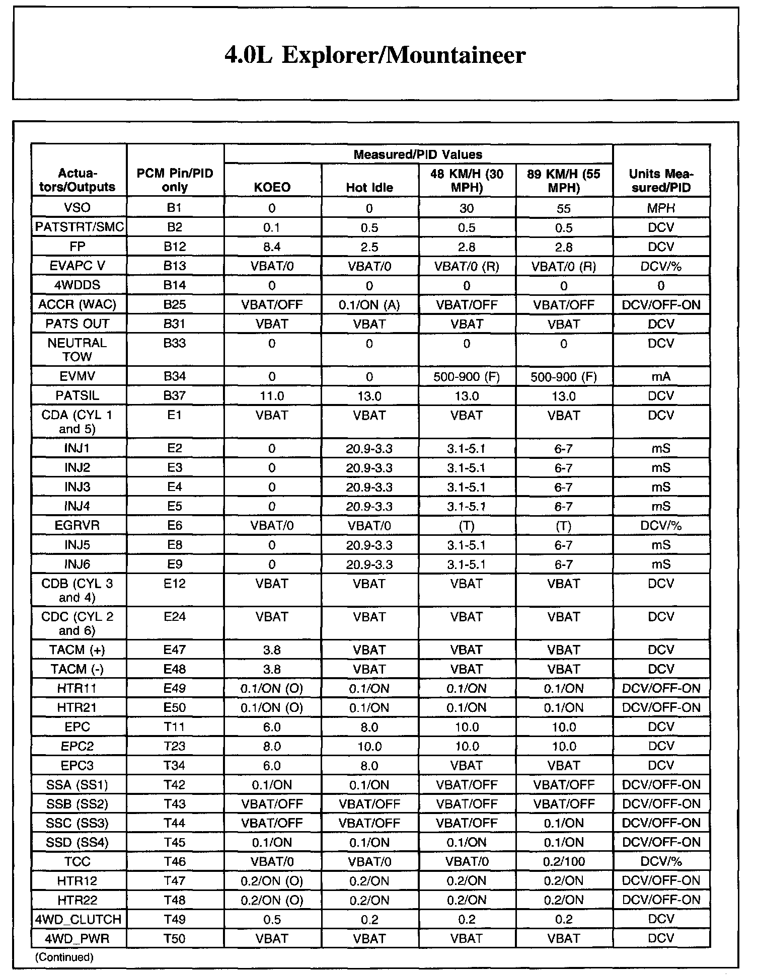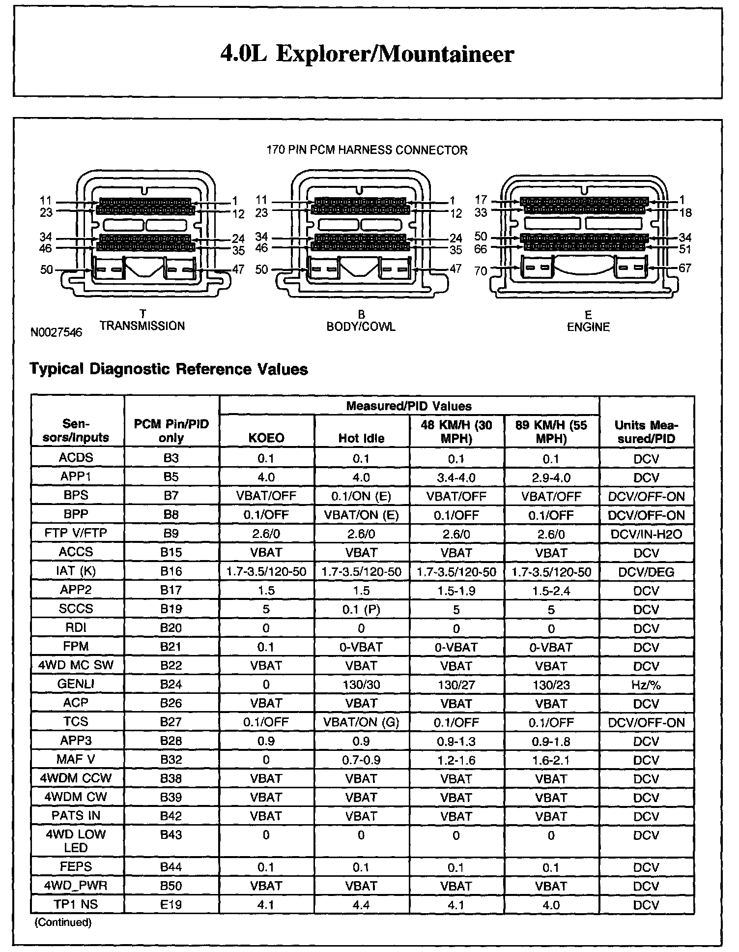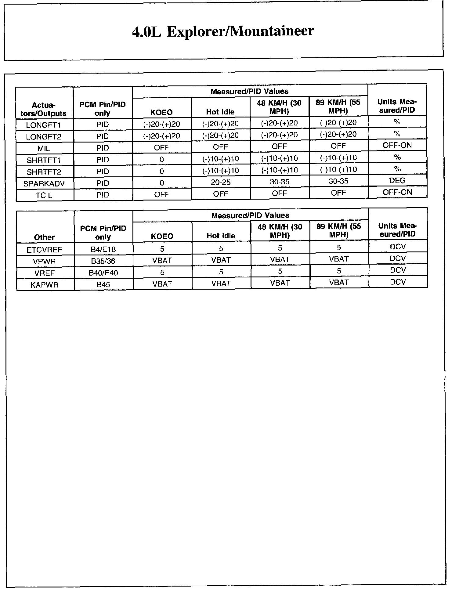 The Typical Diagnostic Reference Value Charts do not display fault parameter identifications (PIDs). These are PIDs which indicate a hard fault with the circuit. They display a value of YES or NO and are PIDs ending with the letter F.