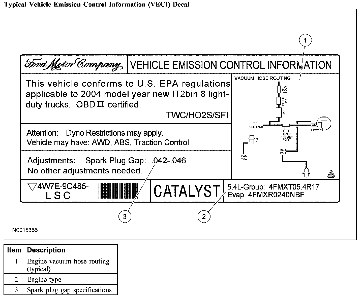 Typical Vehicle Emission Control Information (VECI) Decal: