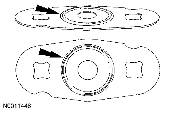 3. NOTE: When installing the new EGR module gasket, install with the side with the raised circle facing the intake manifold.