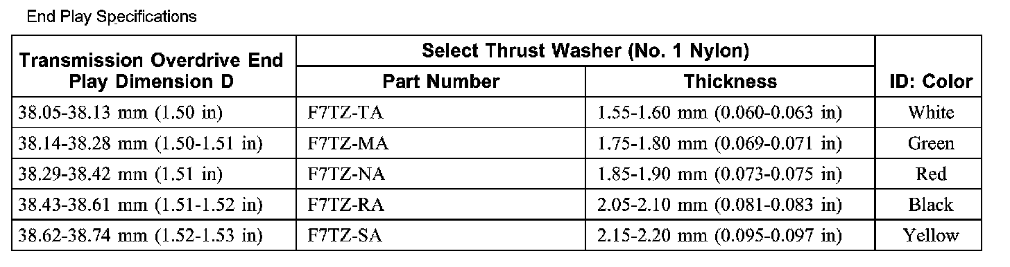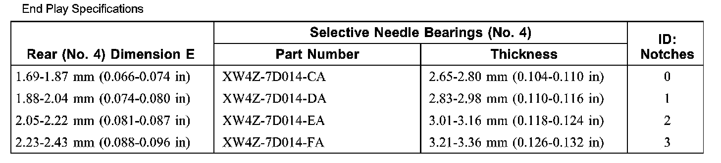 End Play Specifications (part 2):