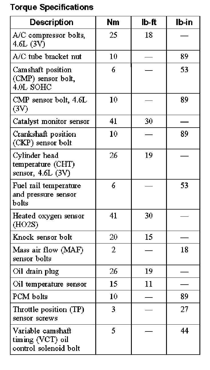 Torque Specifications: