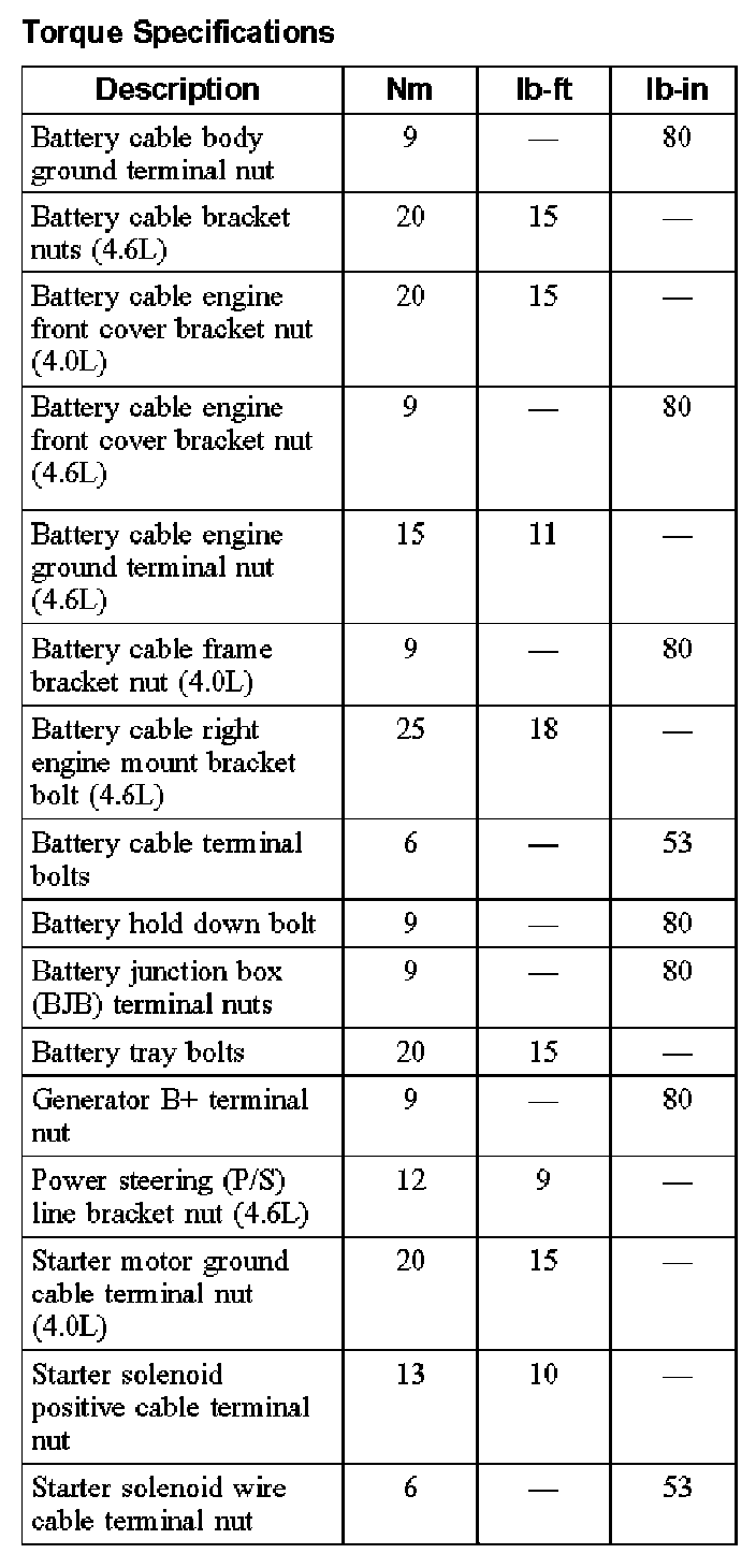 Torque Specifications: