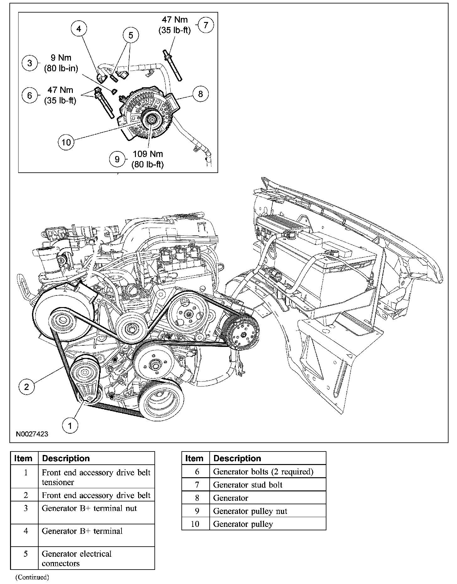- To install, tighten to 47 Nm (35 lb-ft).