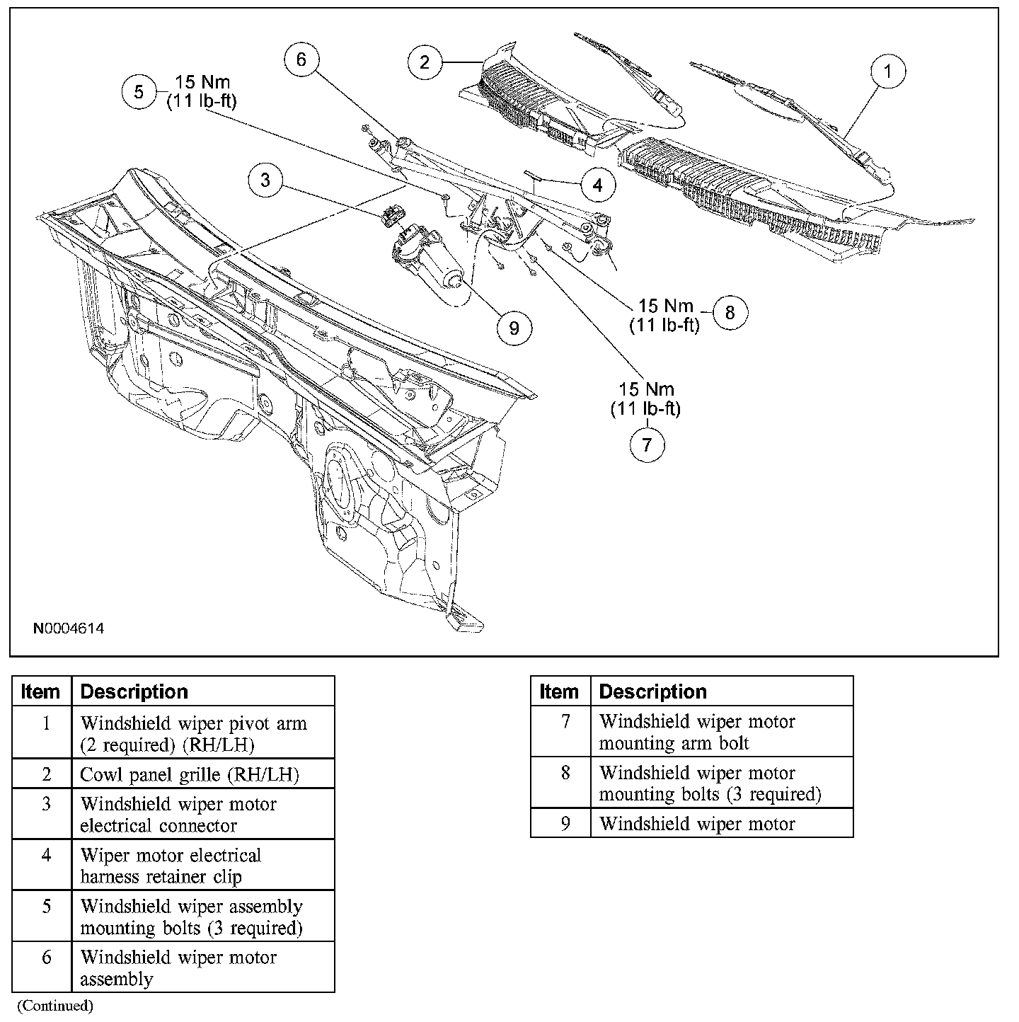 Wiper and Washer System - Exploded View, Front