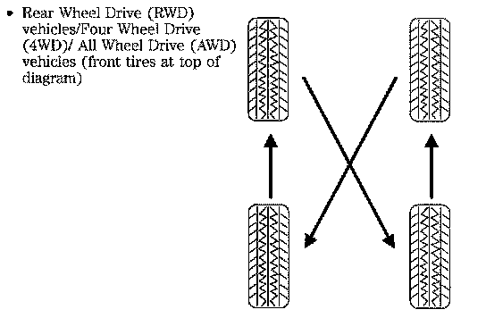 NOTE: If your tires show uneven wear ask an authorized dealer to check for and correct any wheel misalignment, tire imbalance or mechanical problem involved before tire rotation.