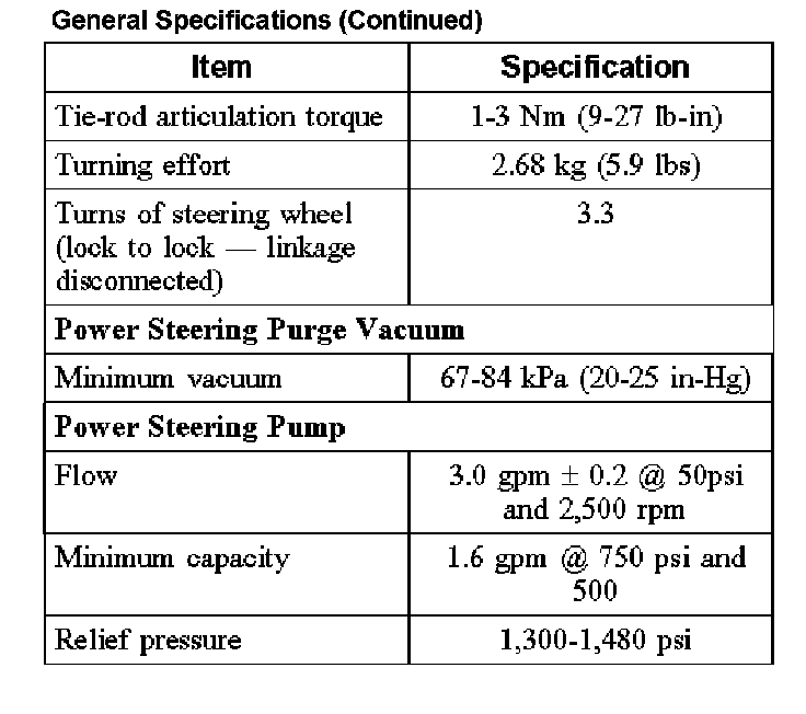 General Specifications: