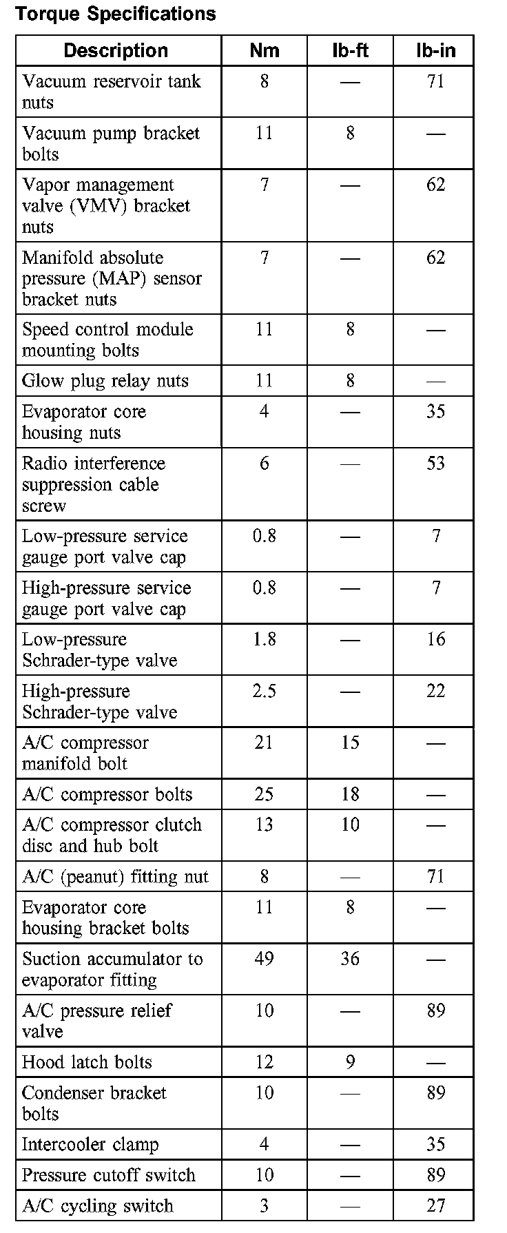 Torque Specifications: