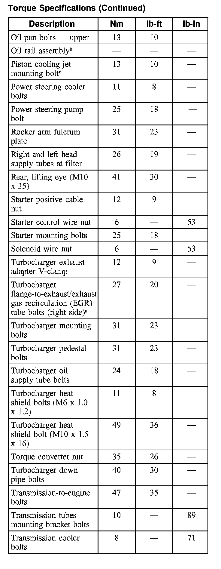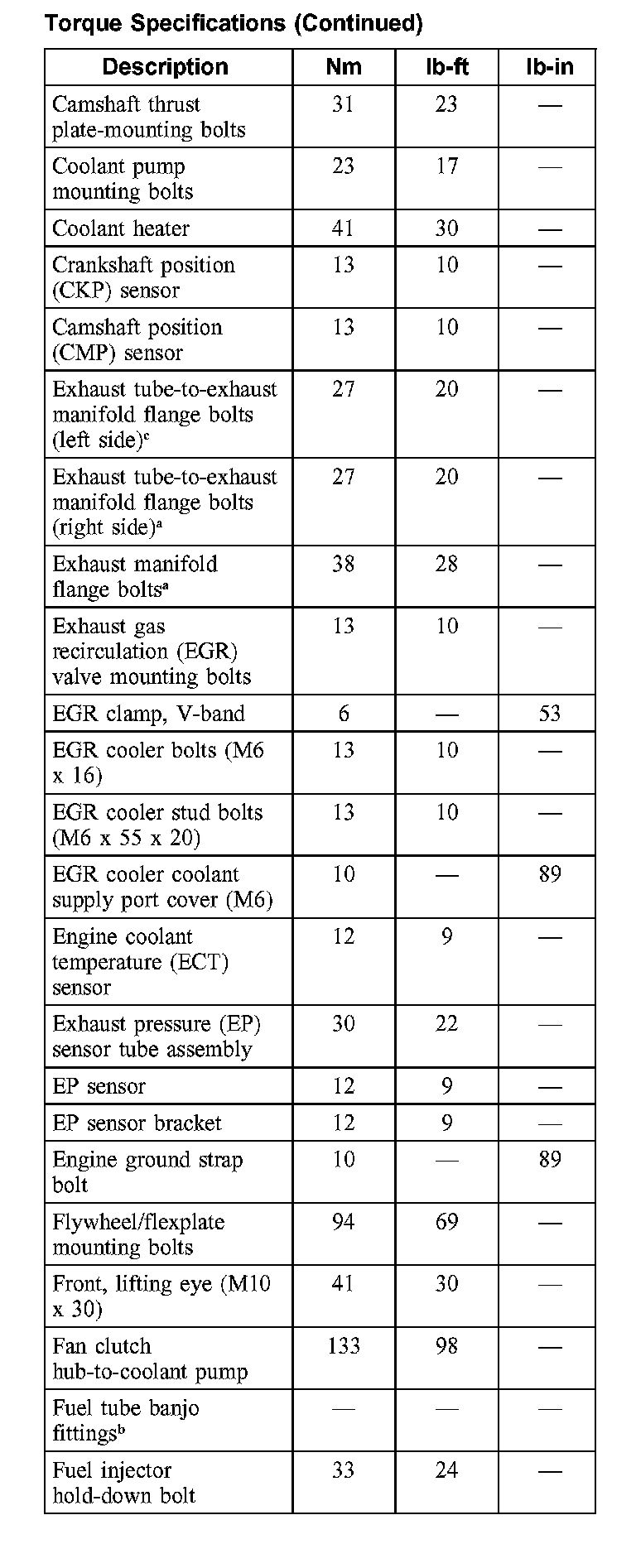 Torque Specifications