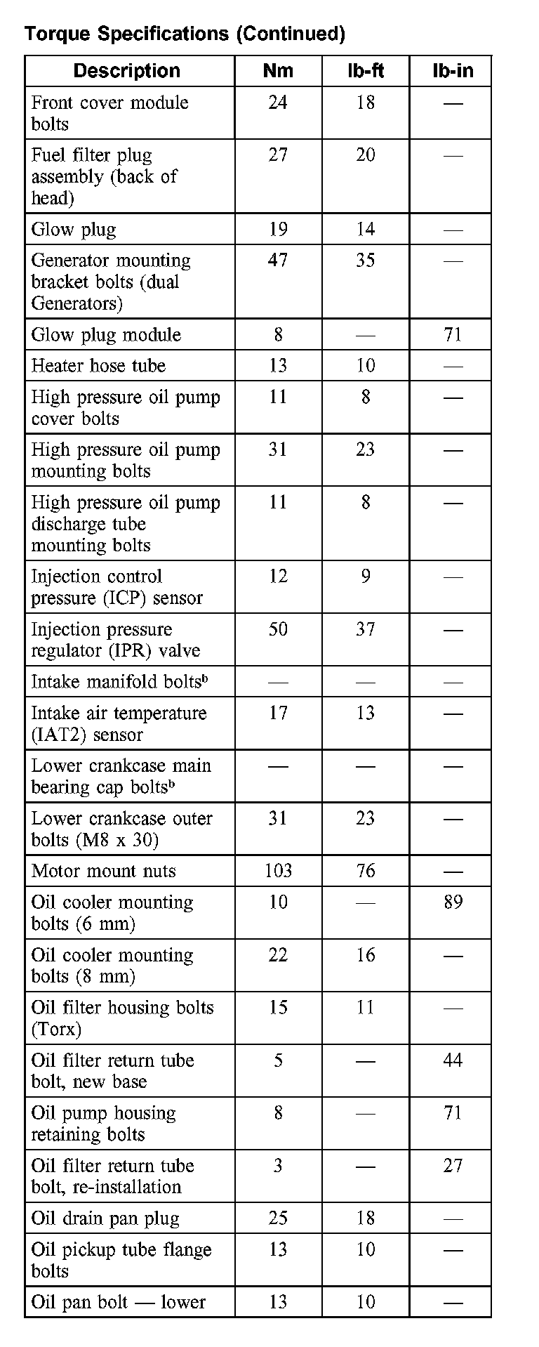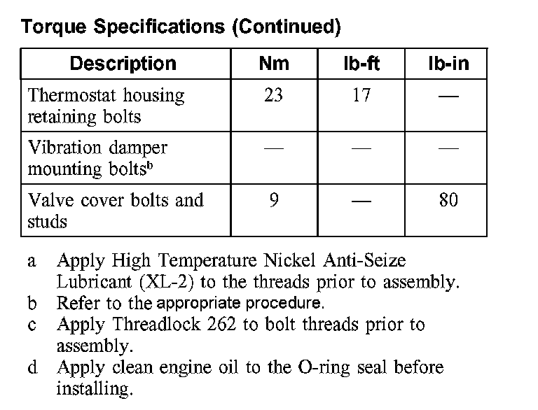 Torque Specifications:
