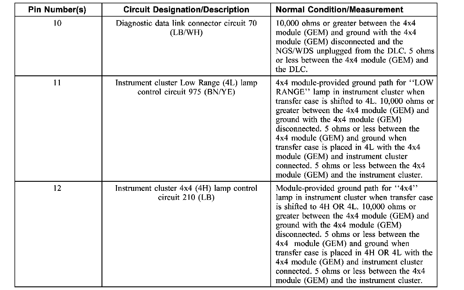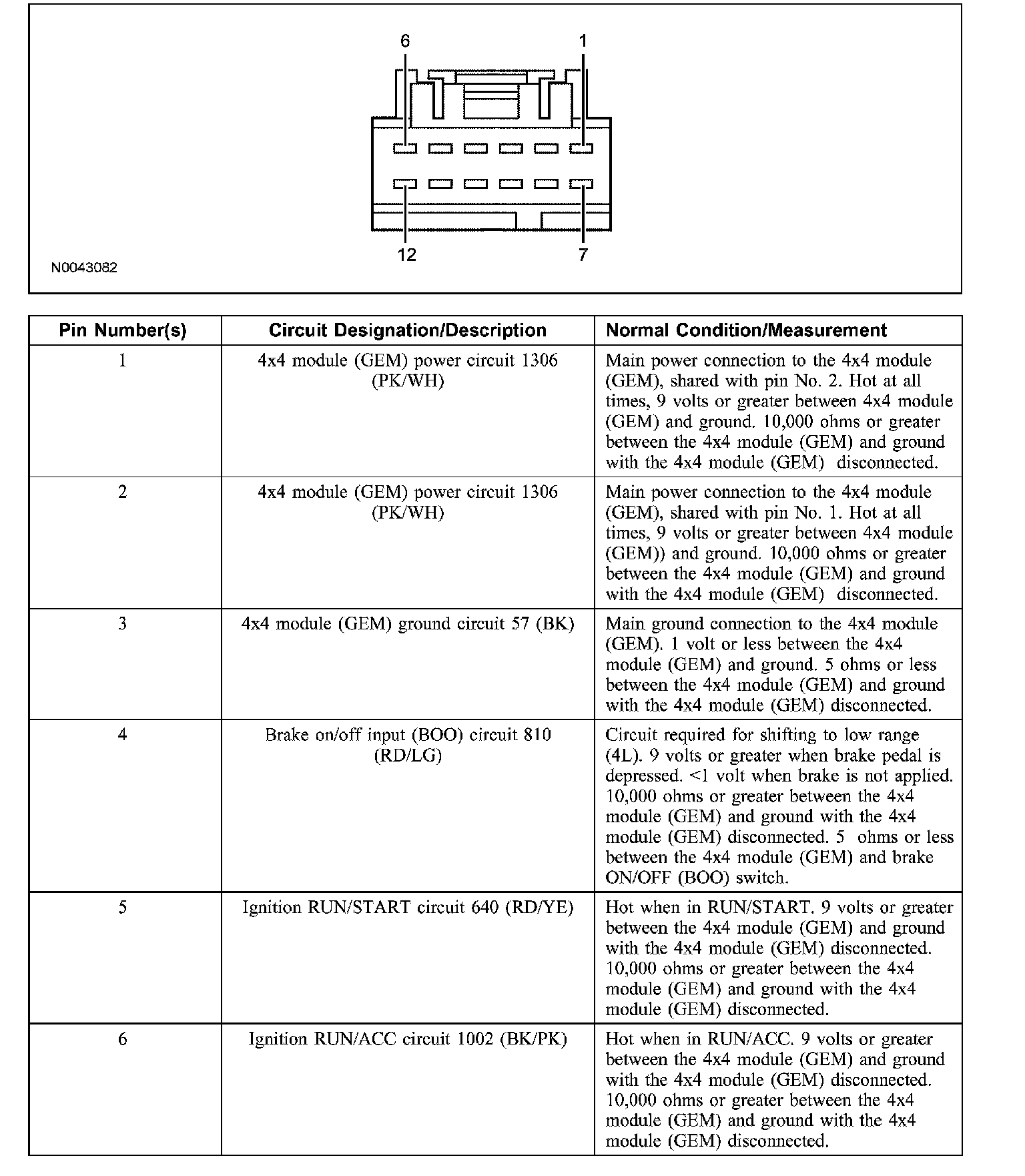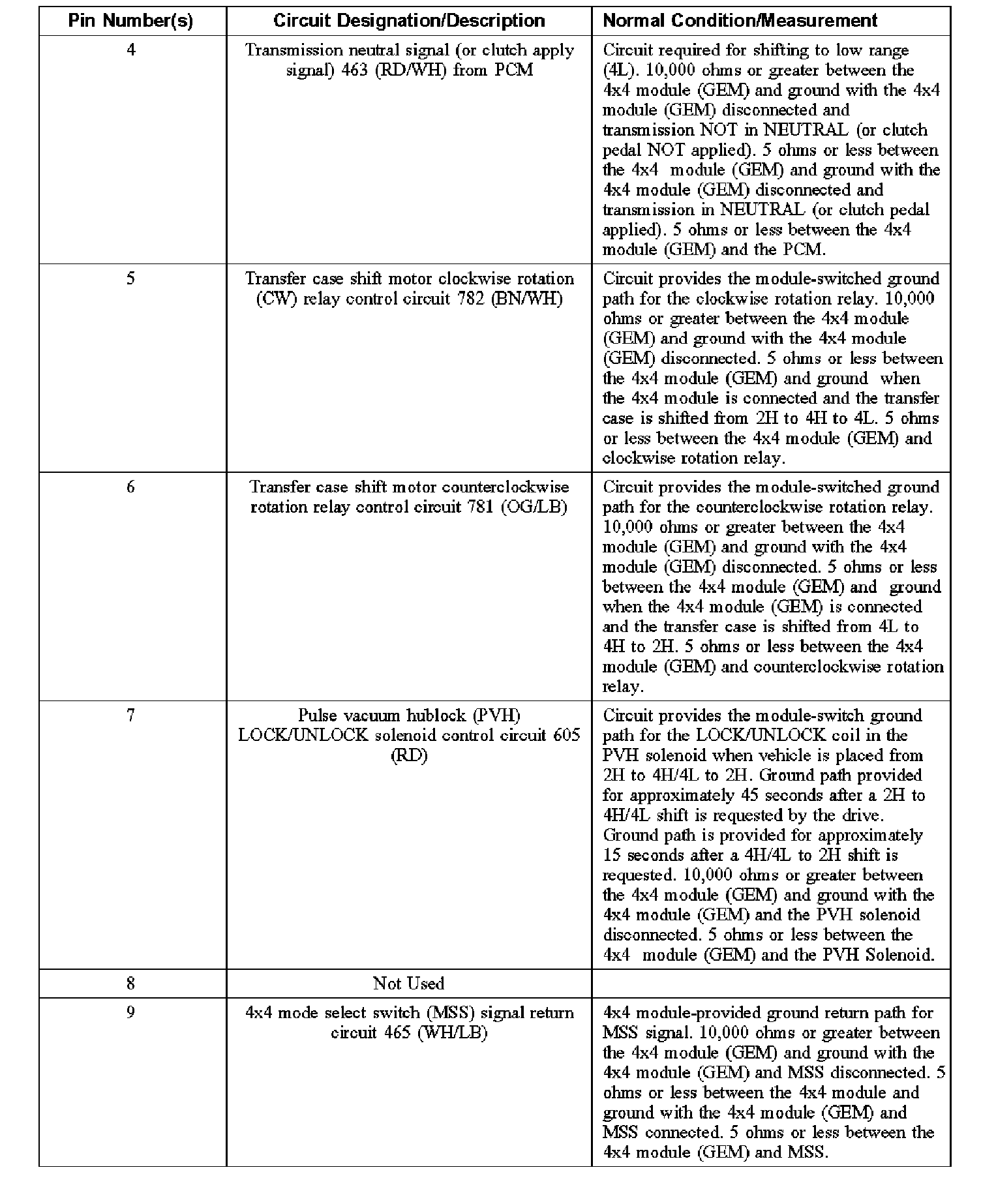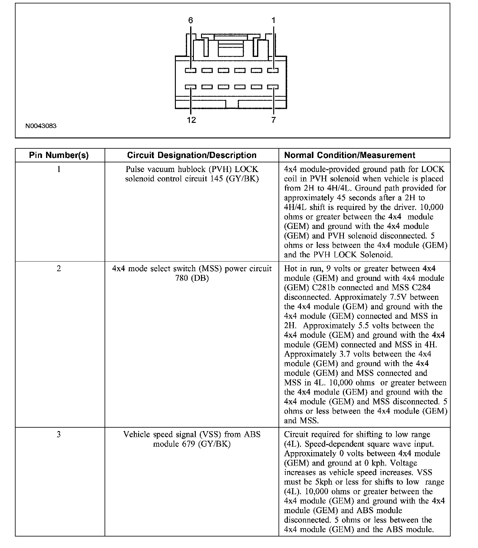 Connector Circuit Reference4x4 Module (GEM) C281a (Part 1):