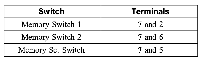 To check the memory set switch LED, connect the positive meter lead to terminal 7 and the negative lead to terminal 1. The meter should indicate greater than 0.3 volt. Reversing the leads, the meter should read OL.